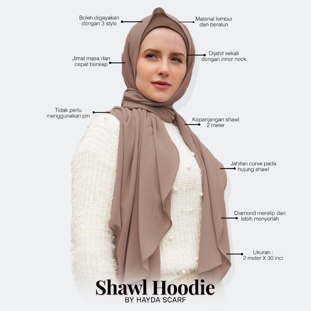 Tutorial Shawl Hoodie Raya Hayda Scarf