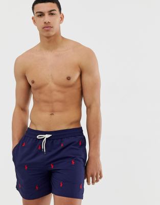 Polo Ralph Lauren Traveler all over player logo swim shorts in navy | ASOS