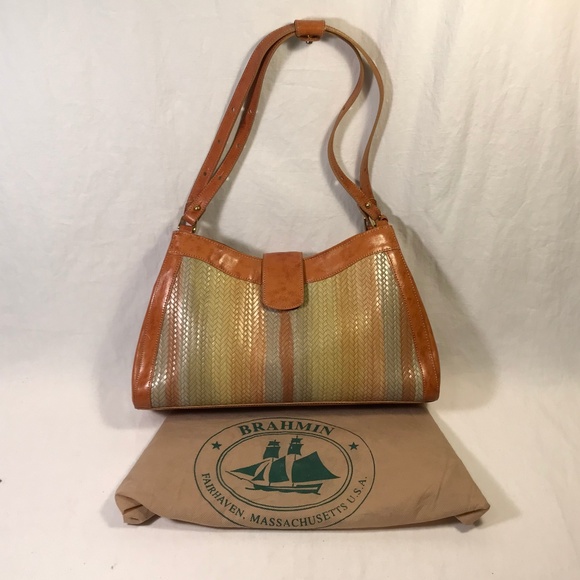 Brahmin Multicolor Woven Tan Leather