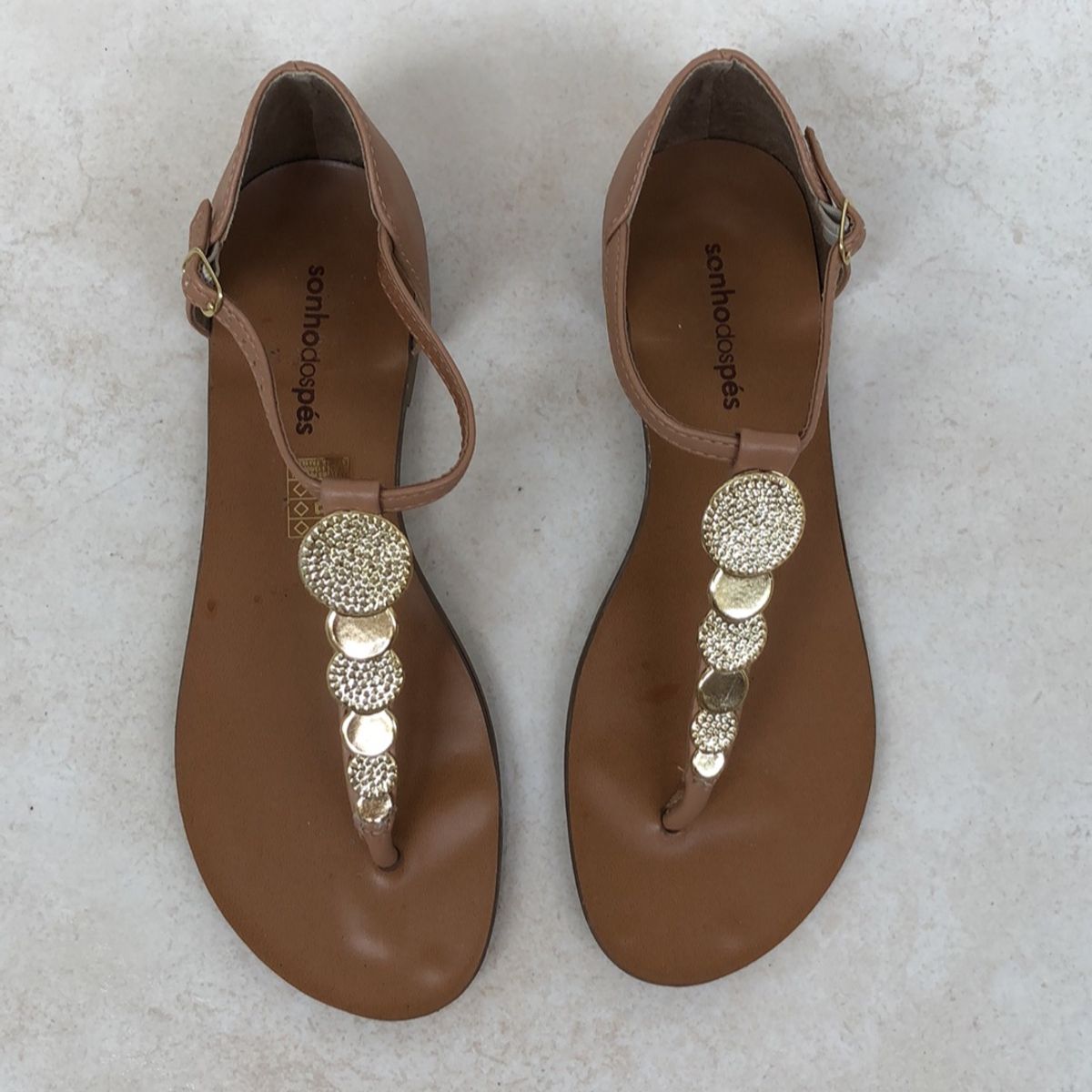 Sandália Rasteira de Dedo com Detalhe em Dourado | Sandália Feminina Sonho Dos Pés Usado 32931421 | enjoei