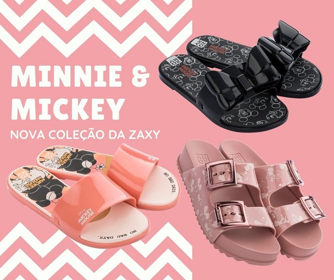 o avesso da moda: minnie \u0026 mickey na nova coleção da zaxy: marca apresenta slides e sandálias birken com pegada minimalista