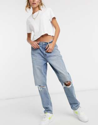 American Eagle - Jean mom effet vieilli - Bleu délavé moyen | Saluscampusdemadrid