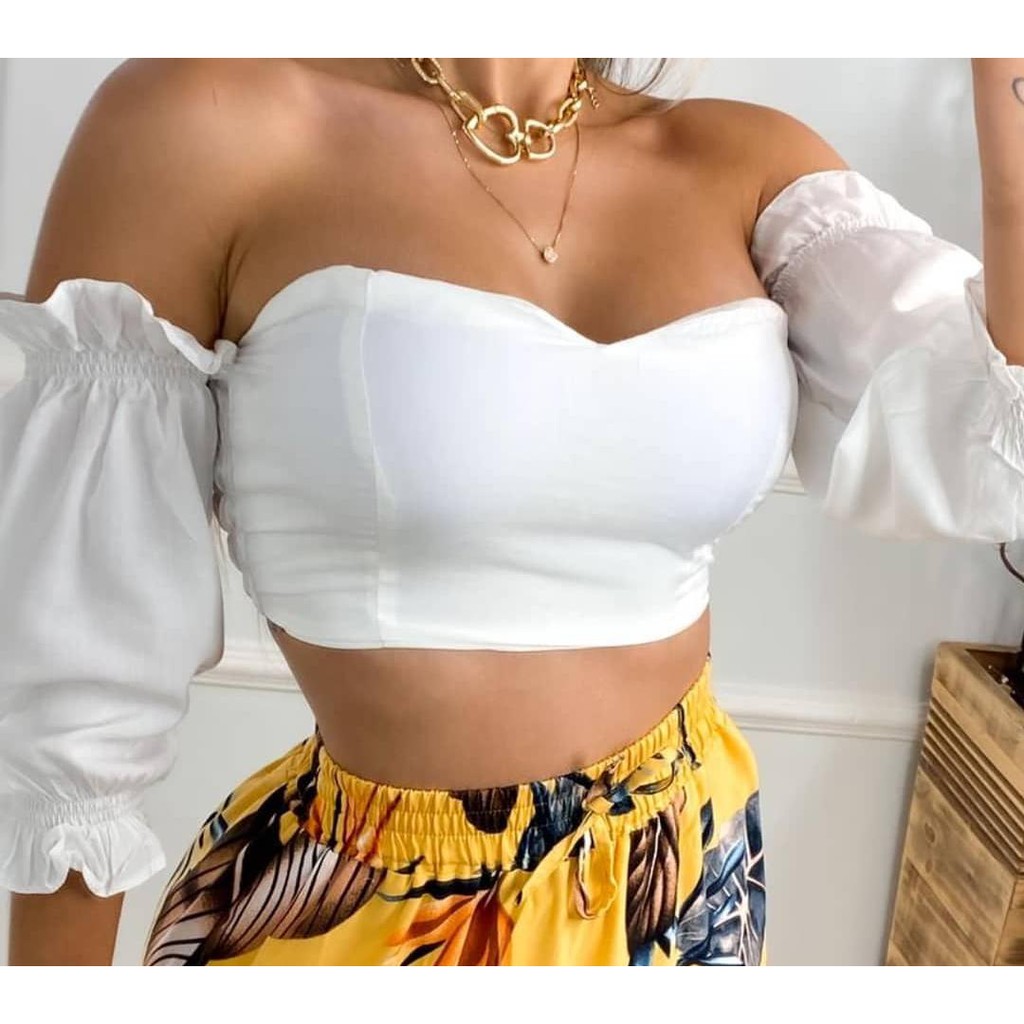 Top cropped feminino franzidinho ciganinha manga longa lançamento - R$ 40.99, cor Branco #113766, compre agora | Shafa