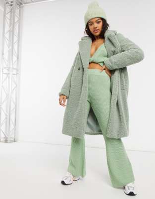 New Look - Manteau long duveteux en imitation peau de mouton - Vert clair | Evesham-nj