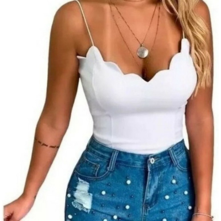 Top Cropped Blusa Blusinha Alça Alçinha Decote Nuvem | Todamulher.com.br